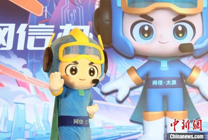 活动中,太原市委网信办IP形象——“并小信”首次亮相,其整体形象为安全小卫士,贴合网信办职能的设定。蓝色战衣和头盔象征着纯净如蓝海的互联网环境,白色手套和战靴寓意着公正、纯洁、健康的网络空间,绿色披风代表着绿色的网络生态,胸口的盾形标志代表对网络安全的守护。