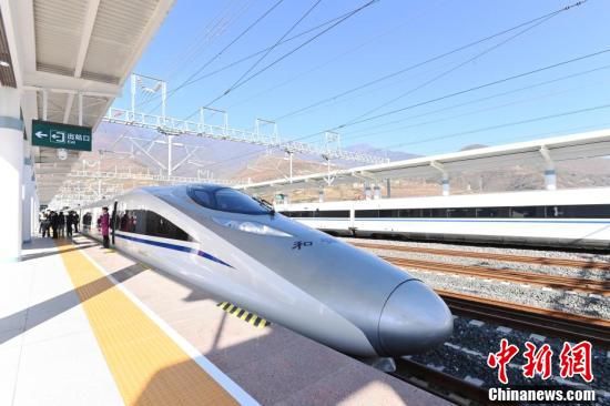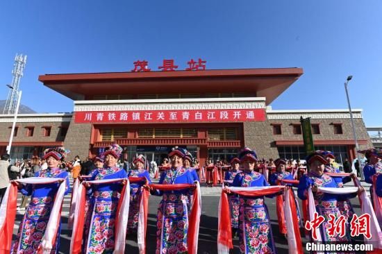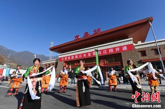 11月28日,川西北高原首条铁路——川青铁路青白江东至镇江关段通车仪式在四川阿坝州茂县举行。此次通车的青白江东至镇江关段,途经成都市青白江区,德阳市广汉市、什邡市、绵竹市,绵阳市安州区,阿坝州茂县、松潘县,接入镇江关站,全长206公里,设计时速200公里,为国家Ⅰ级双线铁路。该线路开通运营后,将极大便利沿线民族地区群众出行,对于推动沿线经济社会发展、服务西部大开发形成新格局,具有十分重要的意义。图为在茂县站等待发车的首发列车。记者 安源 摄