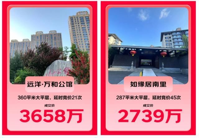与此同时,位于北京市朝阳区望京东园三区远洋·万和公馆3号楼16层1601、北京市海淀区如缘居南里1号楼6层3单元602的两处千万价值的大平层优质豪宅,在开拍后引得竞拍人争相出价,多次延时竞价后,最终分别以3658.5万元、2739.7万元实现成交。这三套位于北京的豪宅法拍房,吸引了15人报名、超1.2万人围观,累计成交金额超过1亿元。