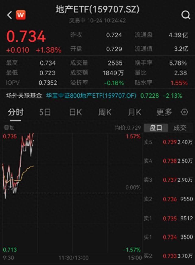 回暖反弹!内外积极因素叠加,龙头房企全线飘红,地产ETF(159707)垂直拉升涨近15%