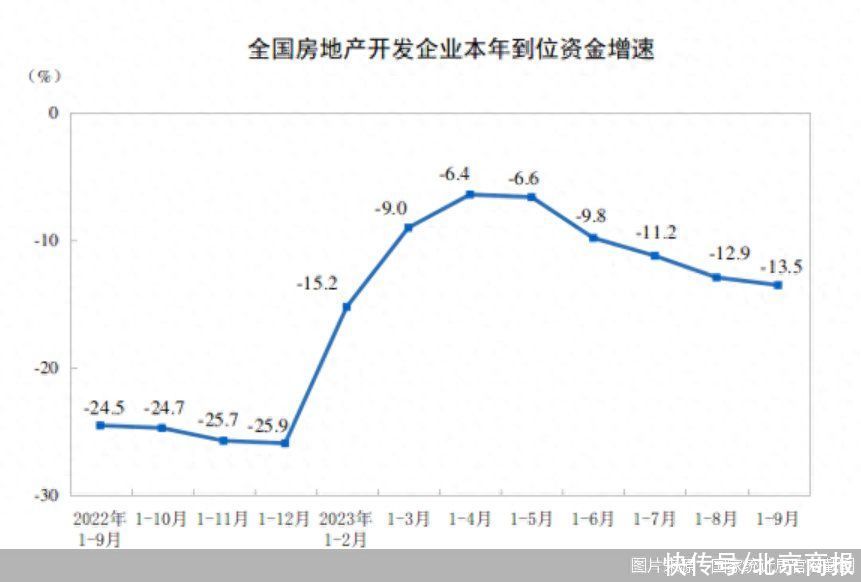 统计局的数据显示,1—9月,房地产开发企业到位资金98067亿元,同比下降13.5%。其中,国内贷款12100亿元,下降11.1%;利用外资36亿元,下降40.0%;自筹资金31252亿元,下降21.8%;定金及预收款33631亿元,下降9.6%;个人按揭贷款17028亿元,下降6.9%。