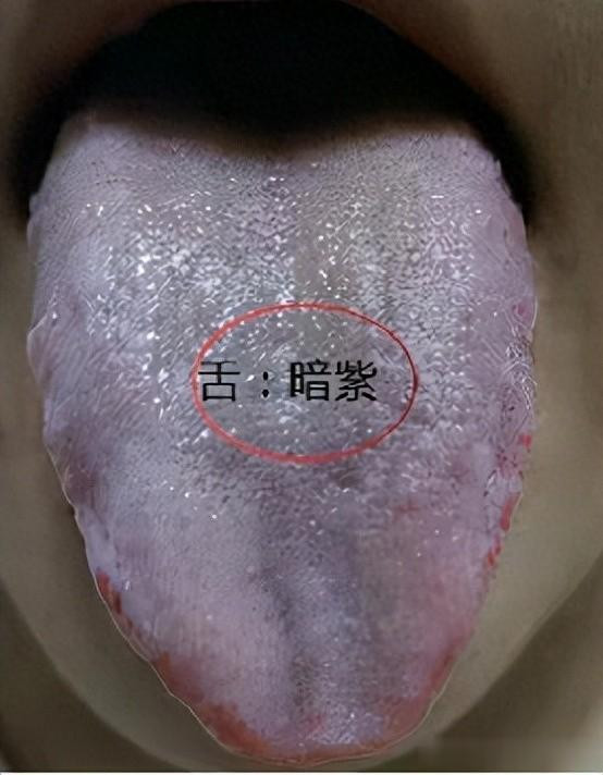 其实失眠呢很多种,血虚的居多,但是有一种呢是血瘀,这个舌色暗紫,你像这个舌色偏暗啊,我们看整体的舌色暗淡,而且呢边上也有齿痕,另外呢,呈这个倒三角,不止一次的讲过这个倒三角啊,倒三角的肝气郁结,这个就是个气滞血瘀。