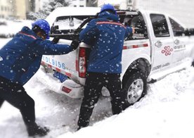 “故障就是命令,抢修就是责任”无论何种天气,只要有用户报告故障,就要第一时间处理。恶劣的天气不能阻止联通人的脚步,他们小心翼翼驾驶车辆,顶风冒雪进行着网络勘察、信号修复,只为让每一个人在风雪天的通信依然畅通无阻。