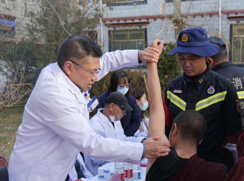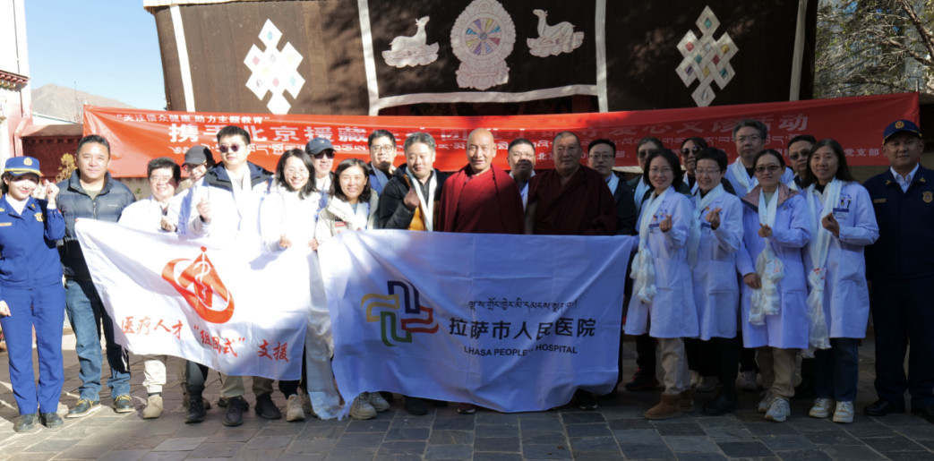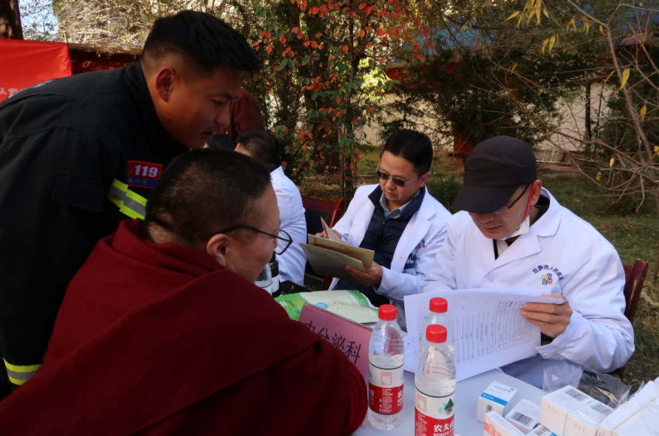 在北京援藏指挥部的统一组织下,来自拉萨市人民医院的17名北京“组团式”医疗援藏专家为寺内僧人和工作人员送医送药。