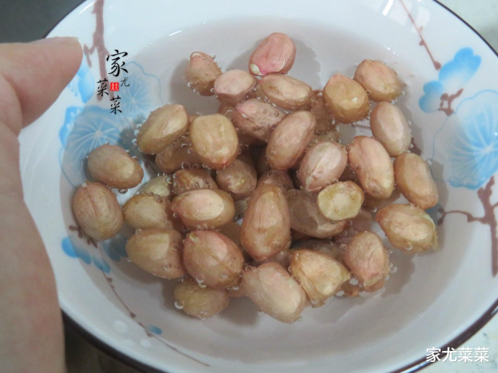 第3步:取花生米1小把放入碗里洗一遍后,再抹干表面的水分。