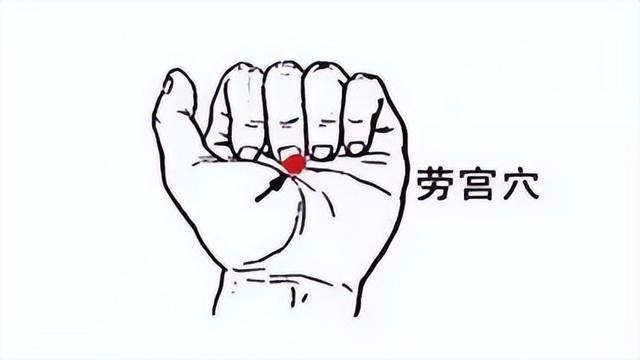 劳宫穴在手掌的正中间,按压的时候,左右手交叉,一手大拇指弯曲,顶揉劳宫穴,每次顶按3分钟,换另外一只手,每天做一次。