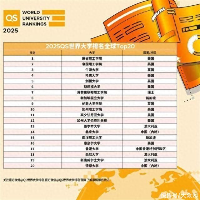 QS世界大学排名前20(图源:QS世界大学排名官方微博)