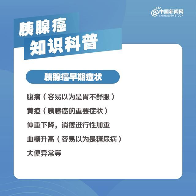 浙江大学医学院附属邵逸夫医院曹利平教授说,胰腺癌被称为“沉默”疾病。通常情况下,症状不会在早期阶段出现。但随着肿瘤增长和蔓延,疼痛常常发生在上腹部,有时会扩散到背部。其他症状包括黄疸、恶心、食欲不振、体重减轻、大便油腻、疲劳和虚弱等。